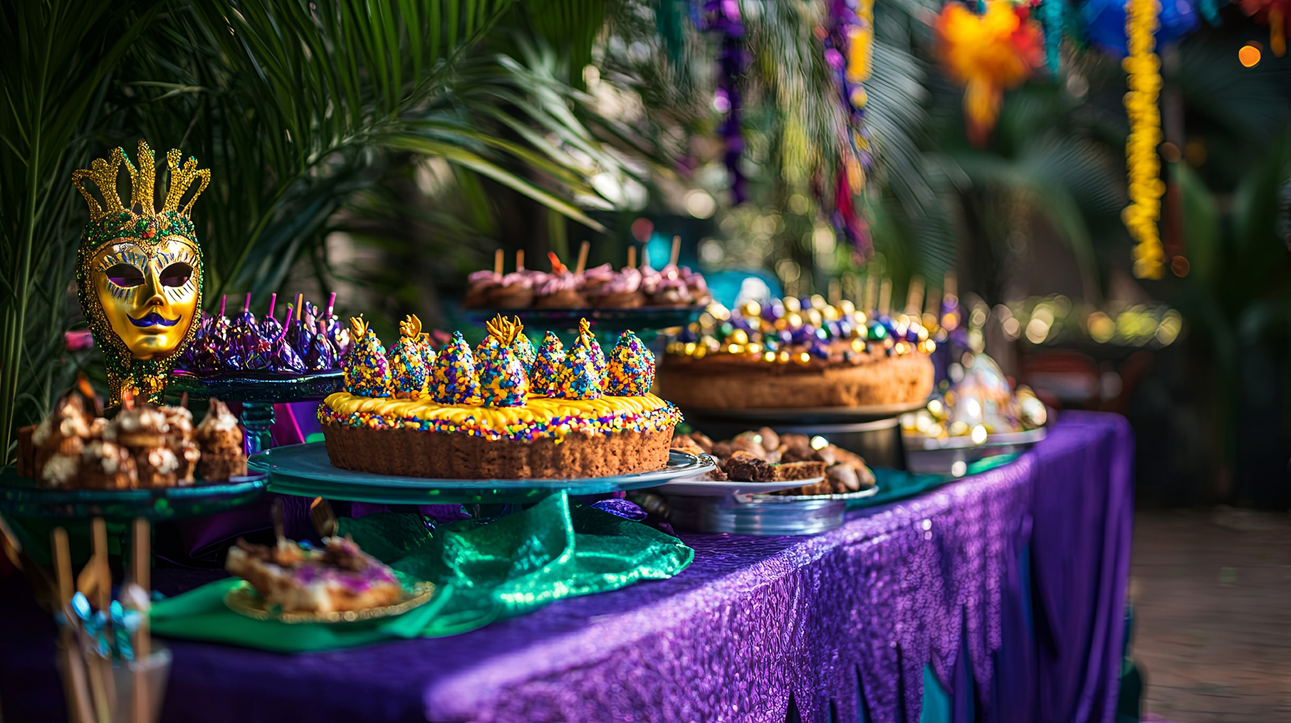 - Color Scheme: Use the traditional Mardi Gras colors—purple for justice, green for faith, and gold for power—throughout your decorations.