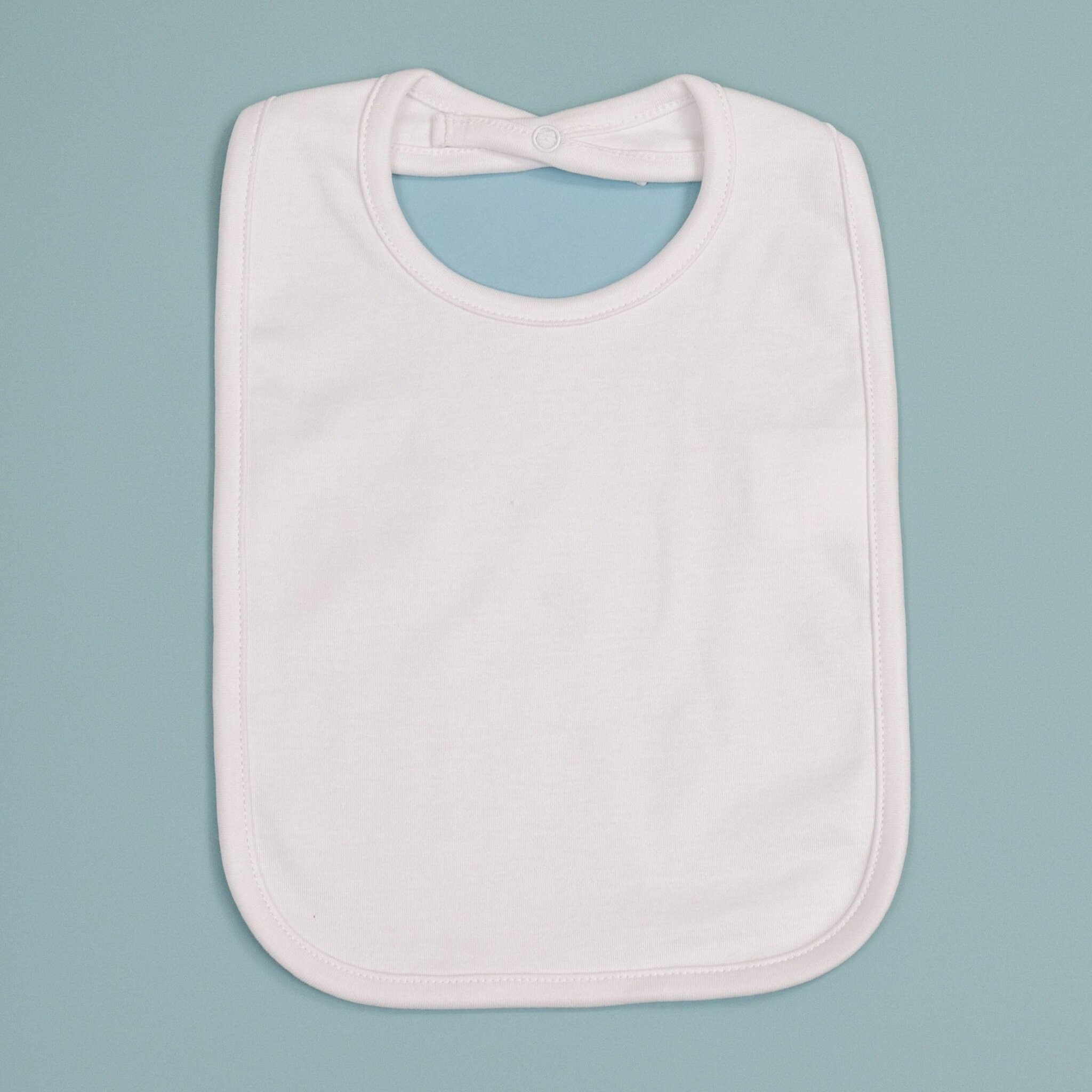 Catch the mealtime messes with this 100% Pima cotton bib. This bib is fully washable. White color allows for easy stain removal. Closes with a back neck snap. Double layered.