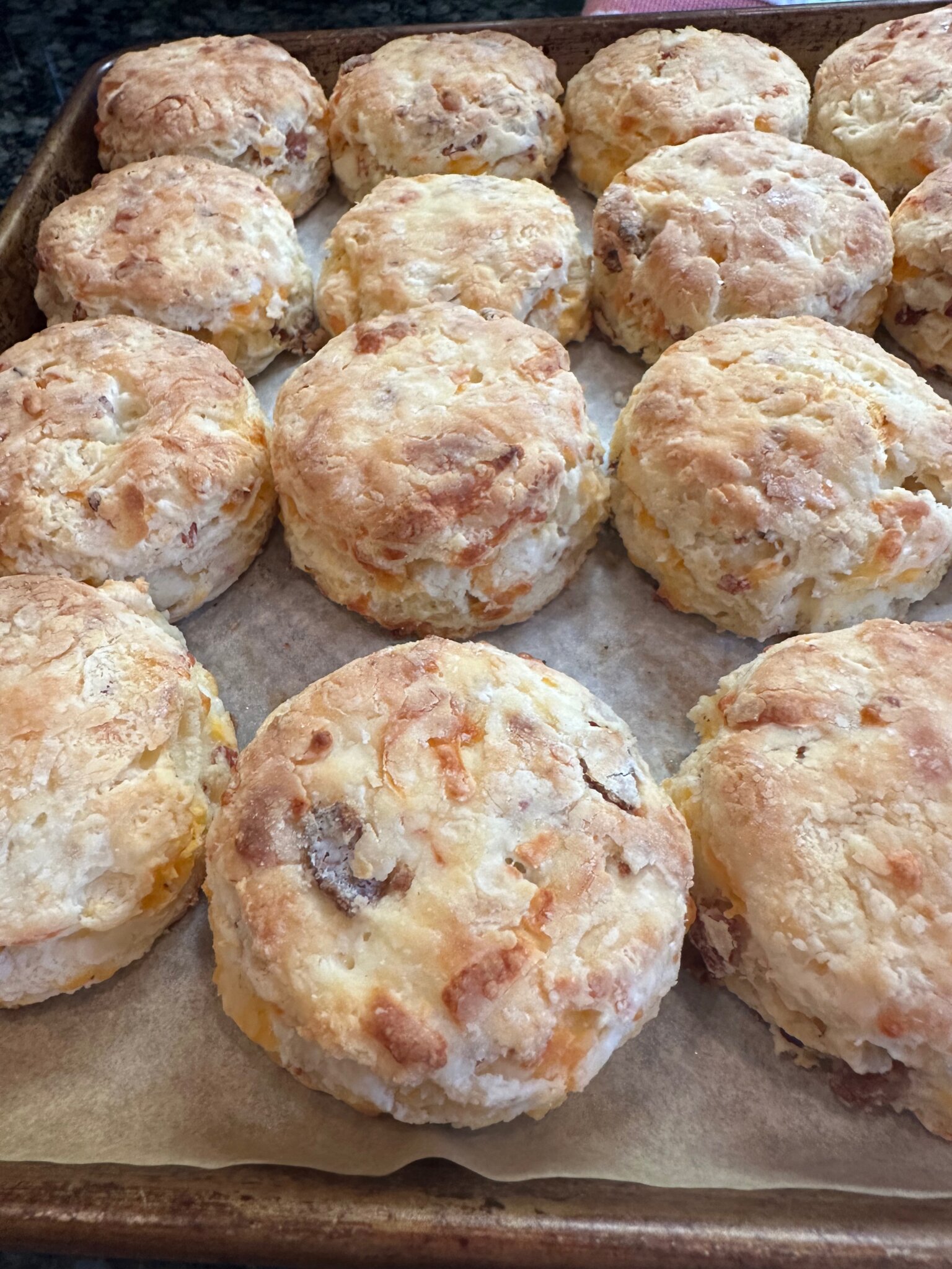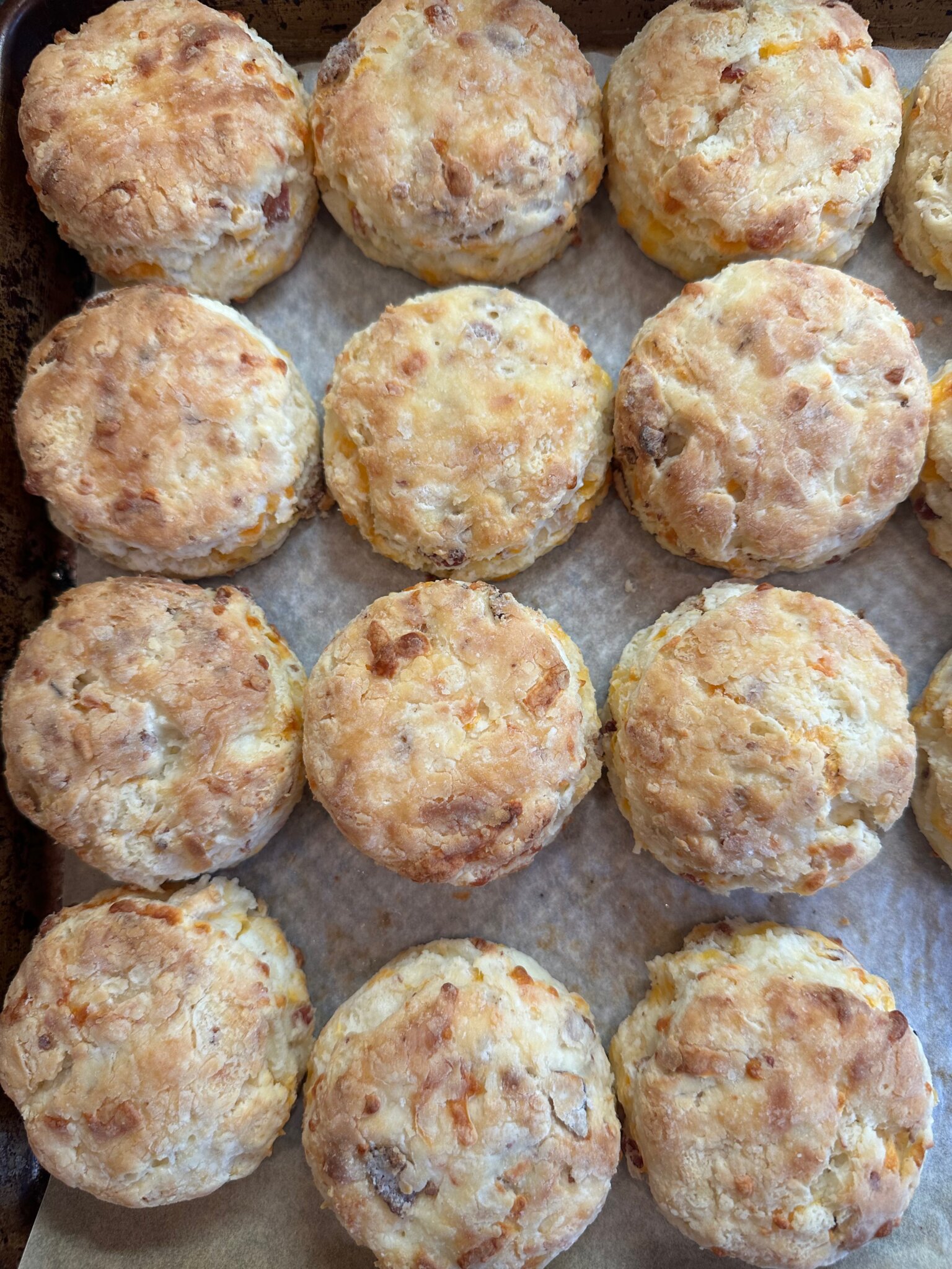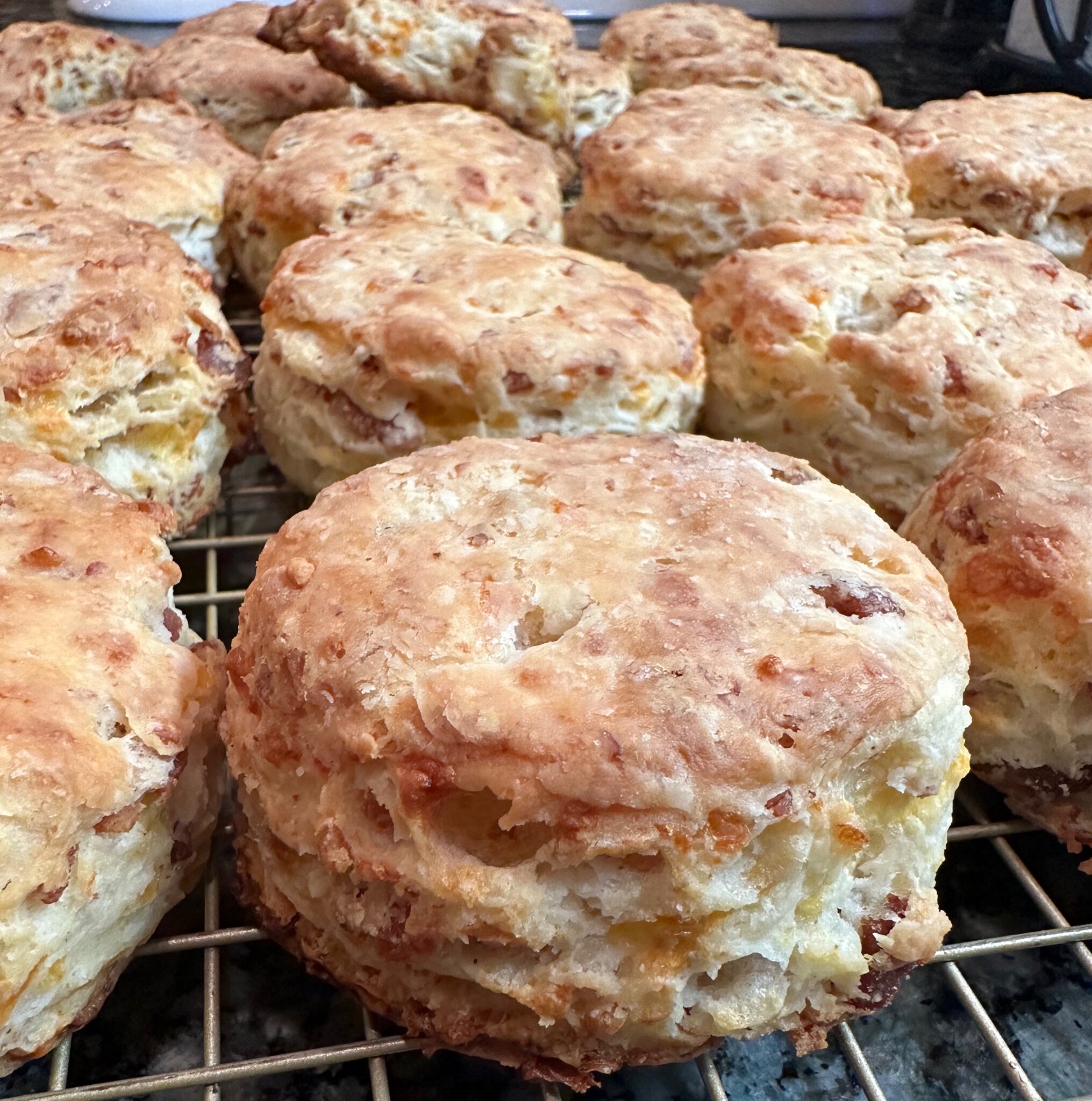 Southern Buttermilk biscuits homemade with Cheddar Cheese, Maple Syrup and Bacon in Pelham, Alabama