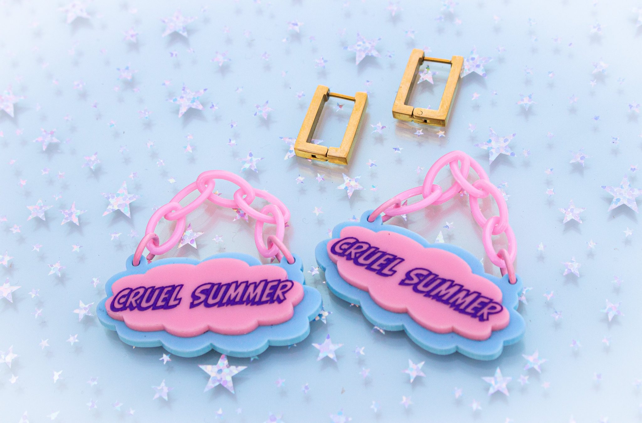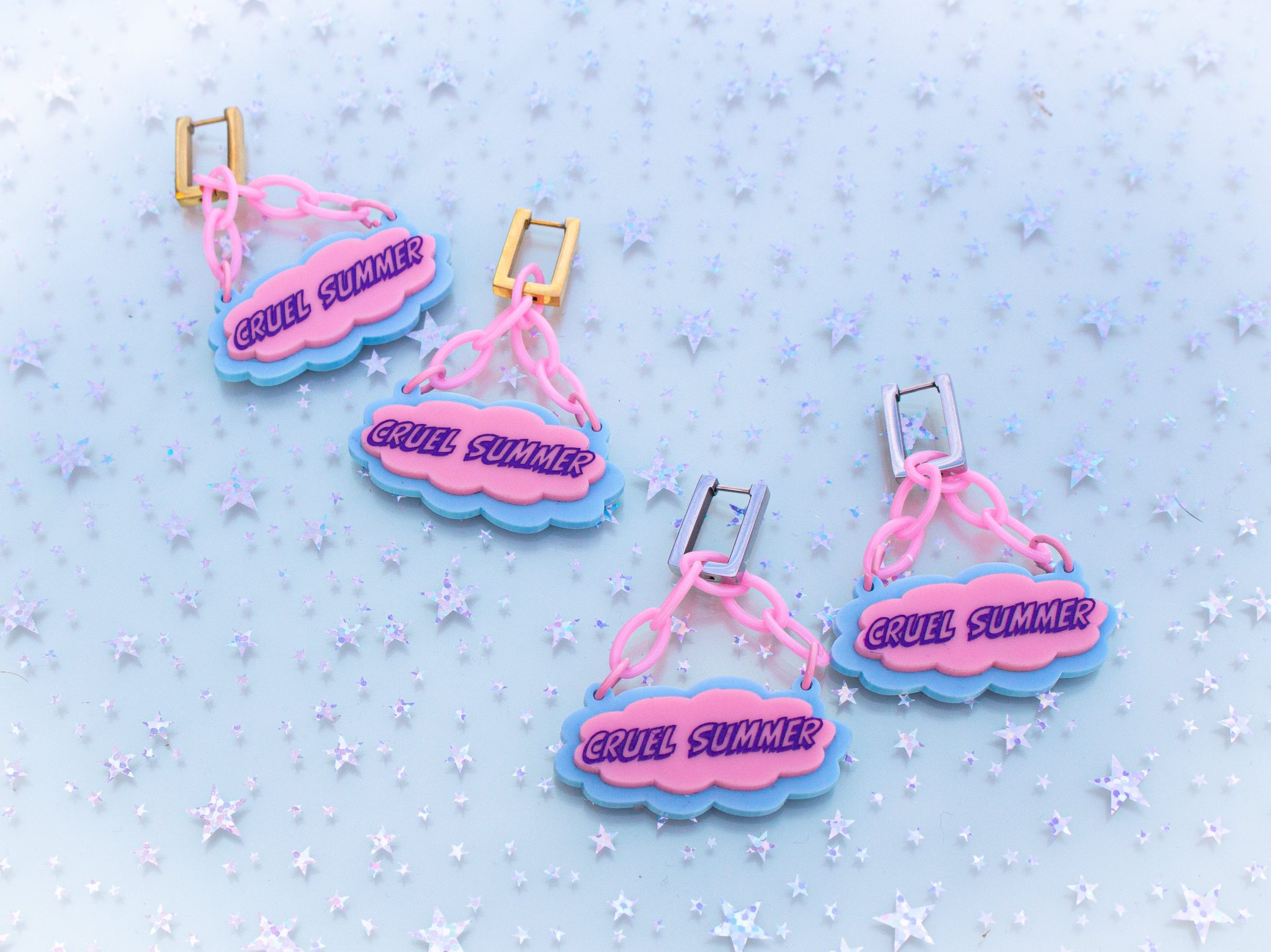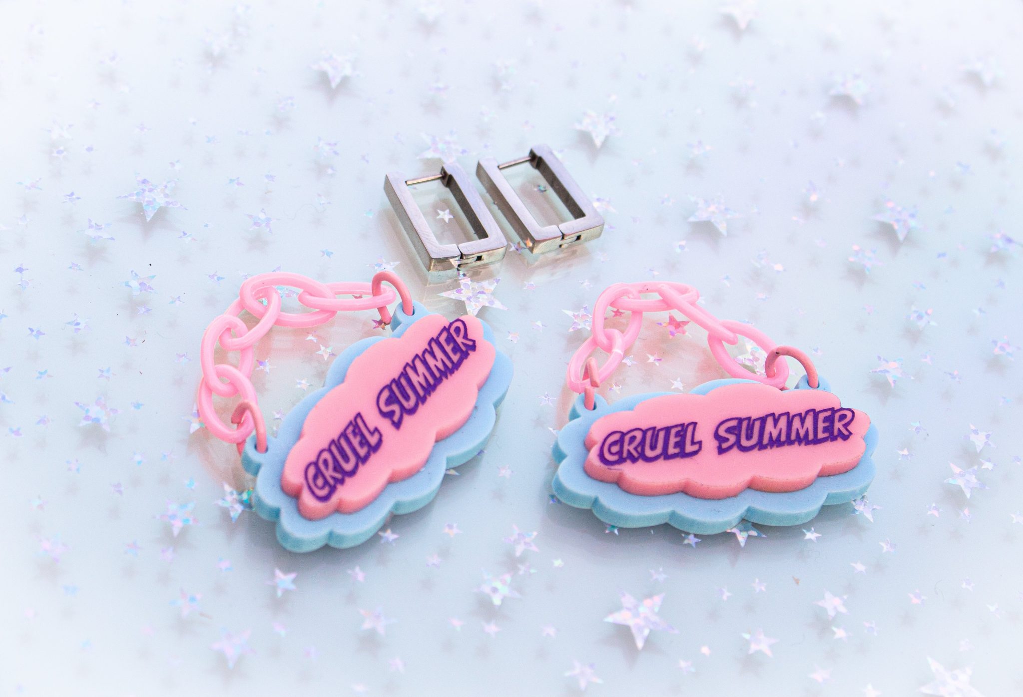 Be summer-ready and show off your Taylor Swift fandom with these super versatile Cruel Summer (2 in 1) earrings. Wear them separately for subtle styling, or pop them together for a simple and chic statement worthy of a music video! Get ready to turn up the heat. 🔥