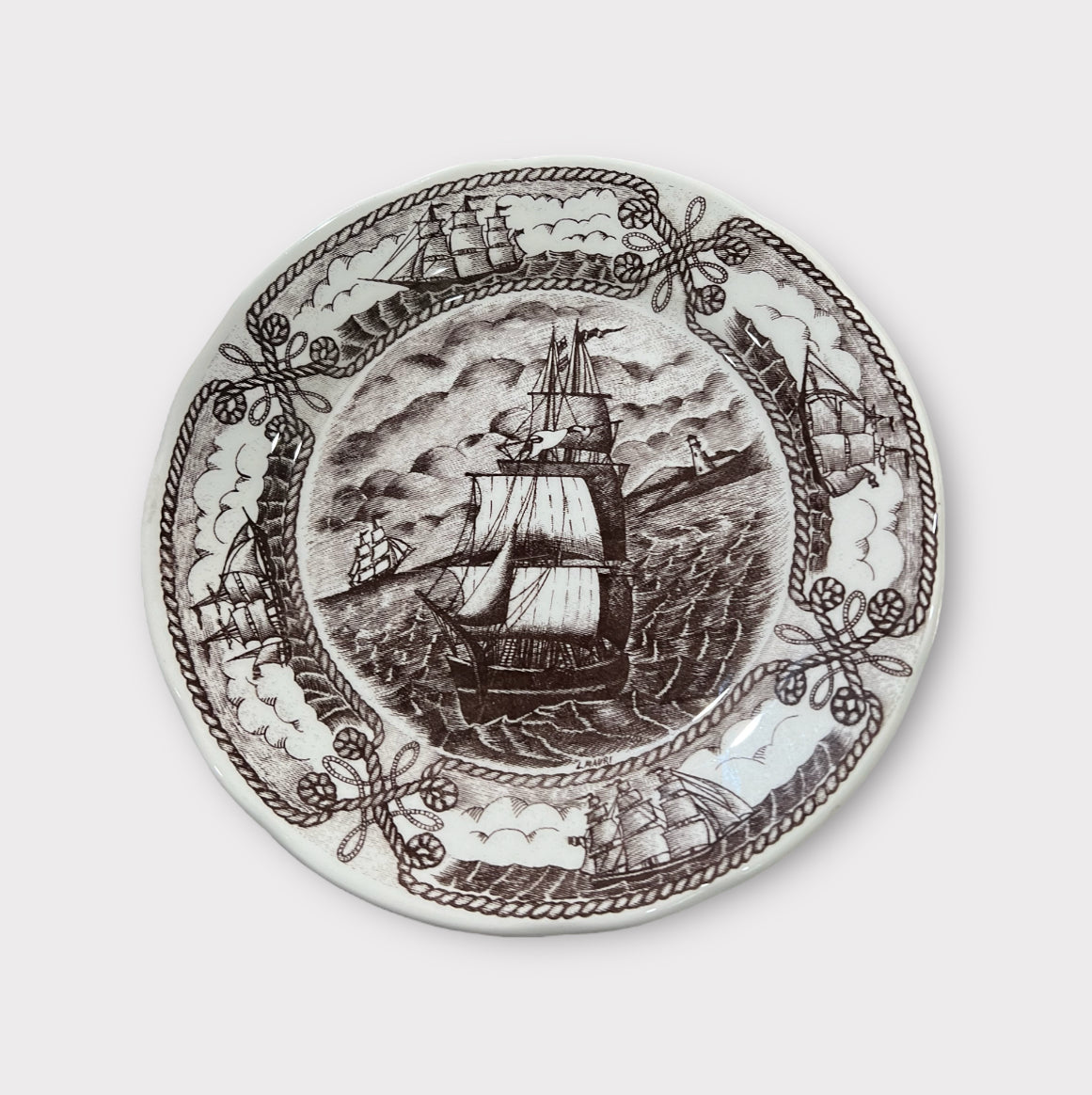Discover the charm of these Italian vessel plates, featuring four beautifully assorted ship designs rendered in a classic brown and white motif. Each plate captures a maritime scene with intricate detail, evoking a sense of vintage nautical elegance. These plates are crafted in Italy, symbolizing authentic craftsmanship and timeless style. Perfect for collectors or those looking to add a nautical touch to their decor, these ship plates blend art and function effortlessly, making them a distinctive addition to any home.