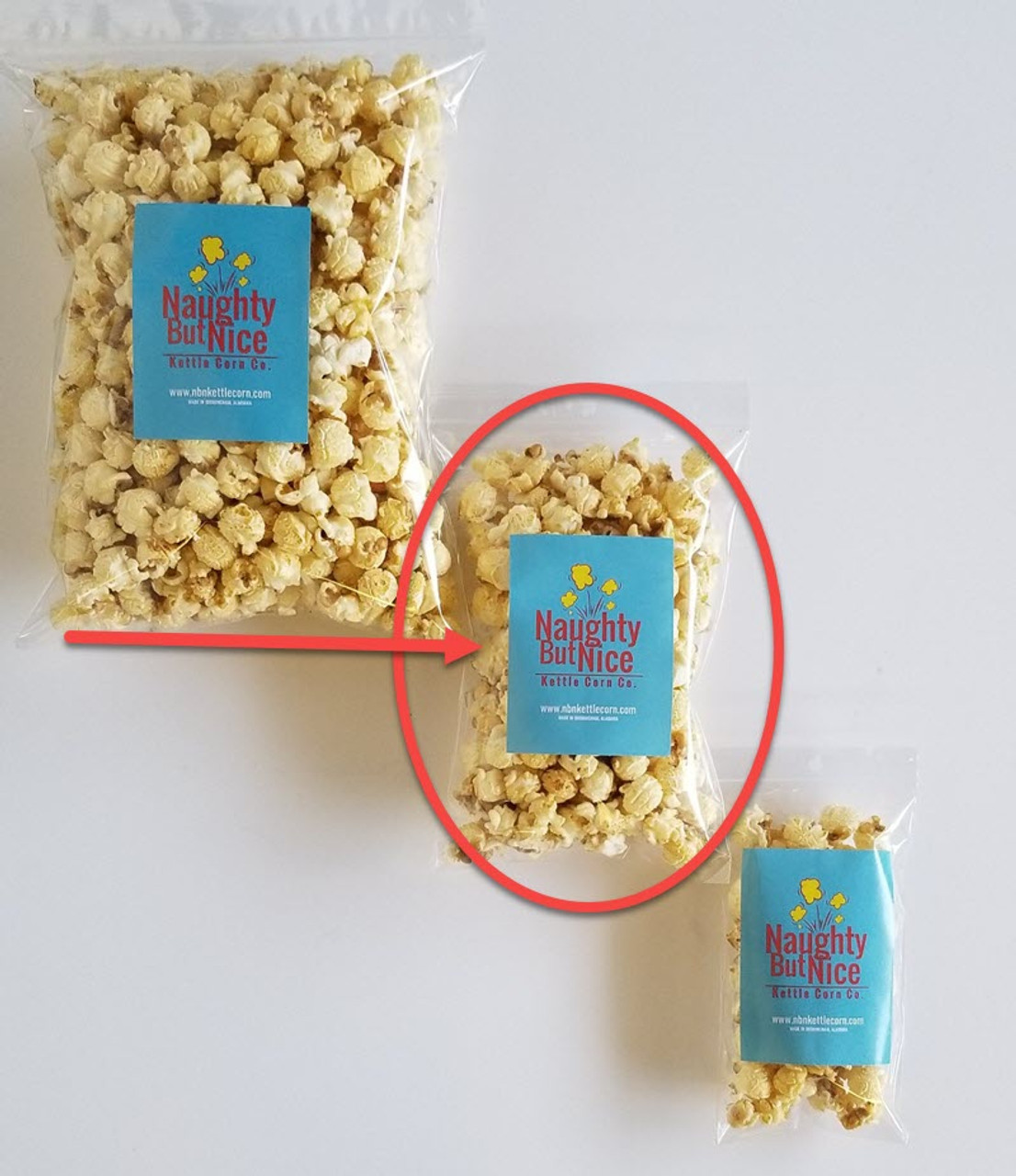 Try a variety of flavors of kettle corn by Naughty But Nice Kettle Corn. Order 5 Snack Bags (6″ x 9″) and choose from these flavors: