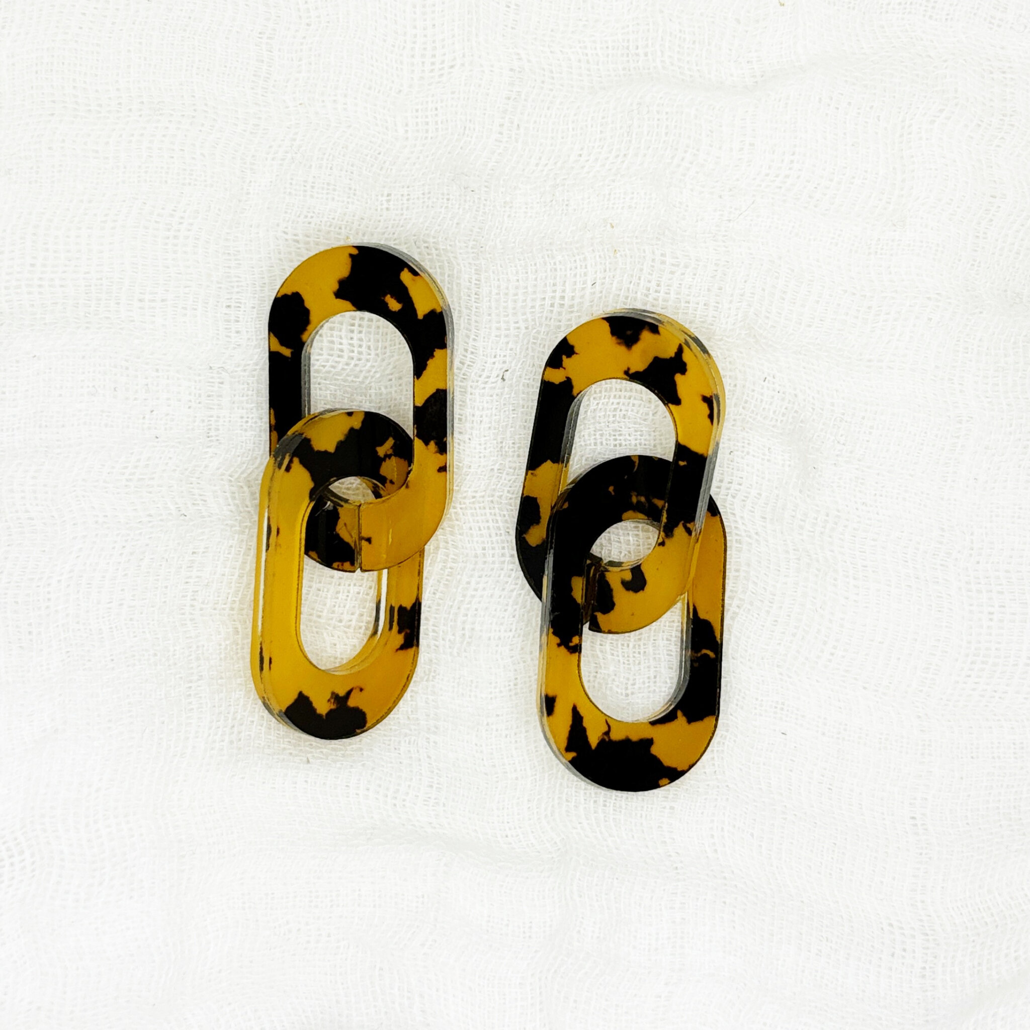 Handmade by survivor-artisans, the Unity earrings are modern statement drop earrings made with acrylic and adjoined to a shepherd’s hook back.