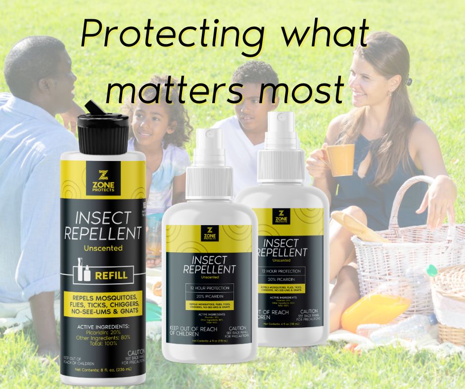 Zone Protects picaridin-based insect repellents provide long lasting protection (12-hrs) against disease carrying mosquitoes and ticks.